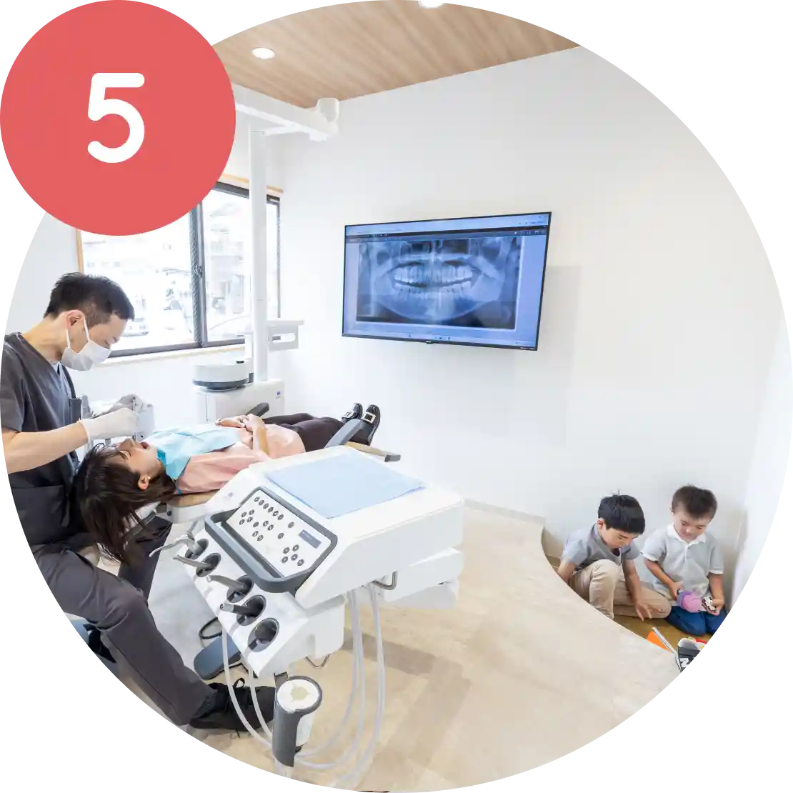 すべて完全個室です。プライバシーが守られ、お子さまの声なども気にせず安心して治療を受けられます。また感染対策としても安心の空間をご用意しています。